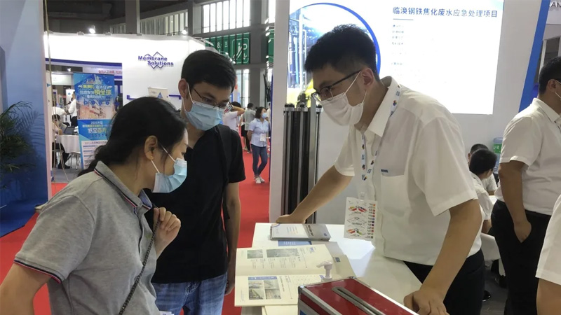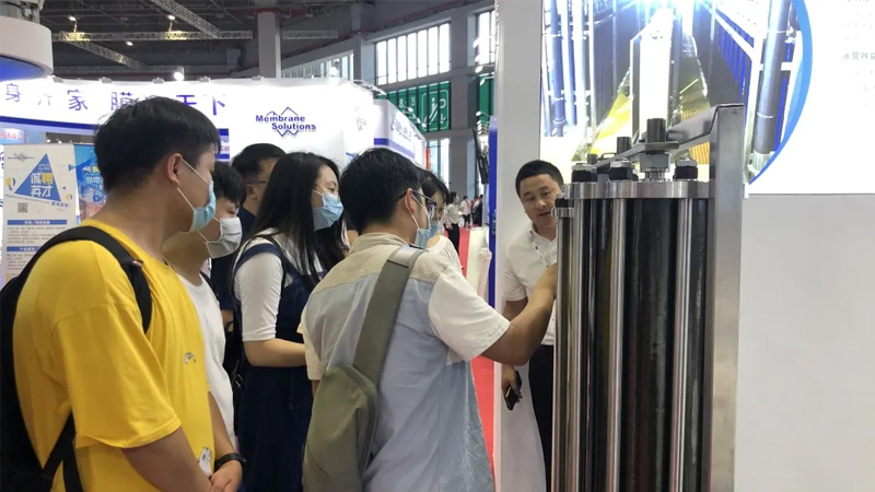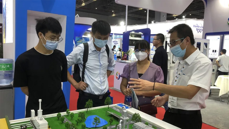 雖然展會(huì)期間天氣炎熱,但是酷暑并沒(méi)有阻擋住客戶的腳步和熱情。金正環(huán)保帶著第三代導(dǎo)流盤(pán)、100bar膜組件、DTRO試驗(yàn)樣機(jī)和CDRO系列膜組件,以及各領(lǐng)域的解決方案、核心工藝包贏得了眾多工程公司和客戶的青睞,關(guān)注、咨詢的人絡(luò)繹不絕,熱鬧非凡。